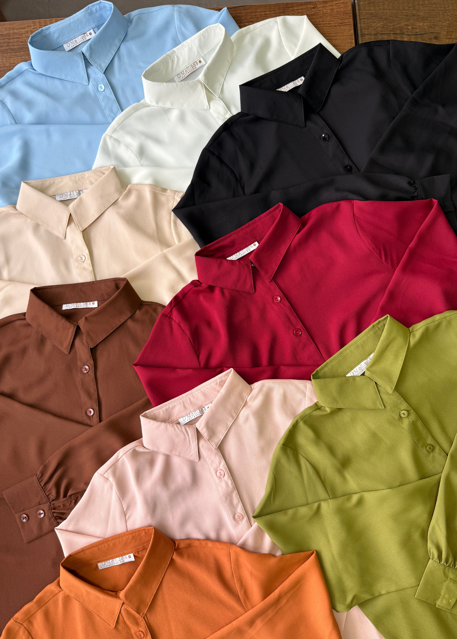 Nuestras blusas Cami tienen el cuello camisero y son hechas delicadamente en gasa milk chifon, son en manga larga y muy lindas para usarlas en la oficina o en una salida casual como una capa.