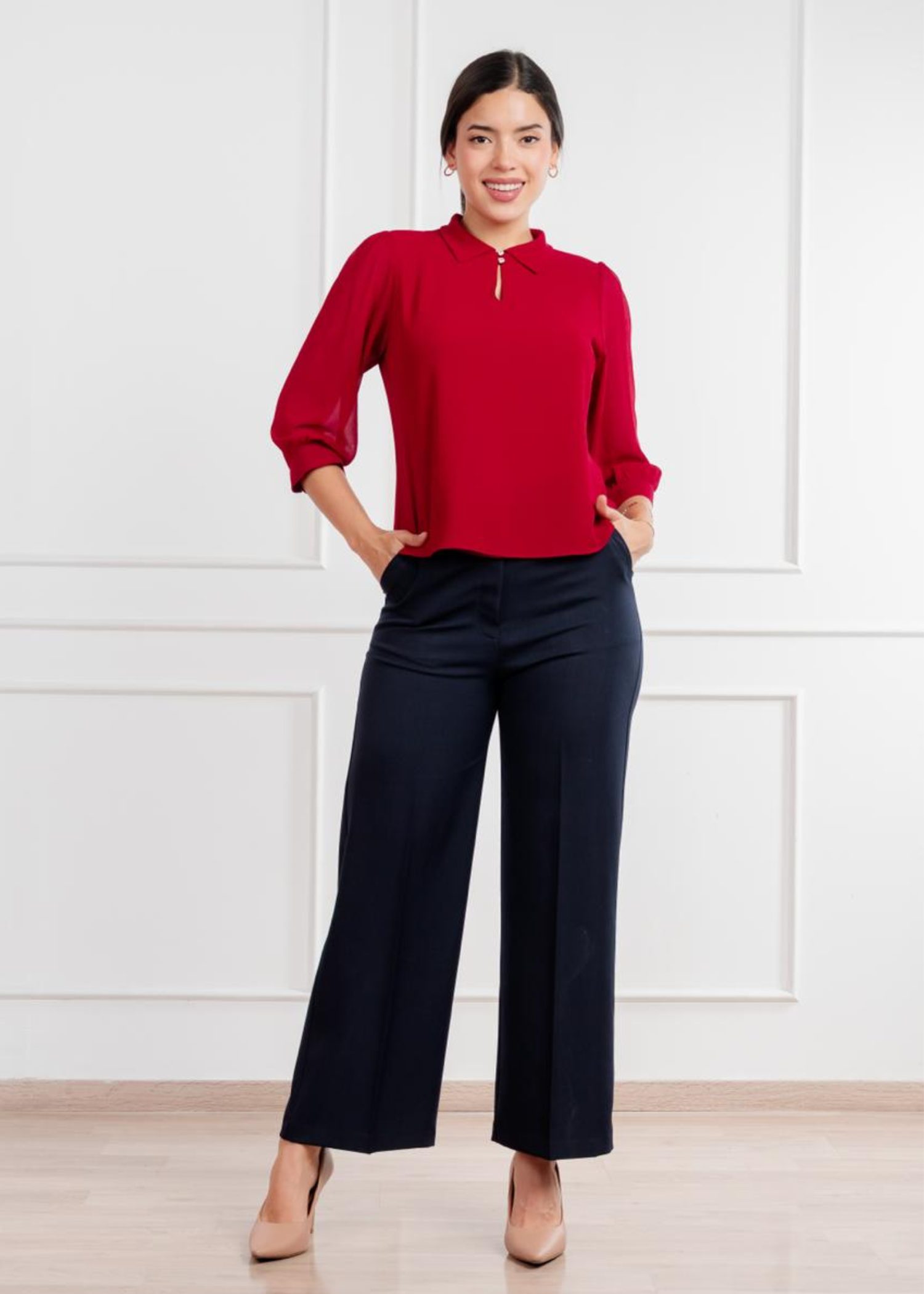 Nuestra Blusa Renata llegó para quedarse, elaborada en gasa americana con doble forro tiene un detalle de botón en las mangas y un cuello súper sutil , el cual le da un toque moderno y elegante.