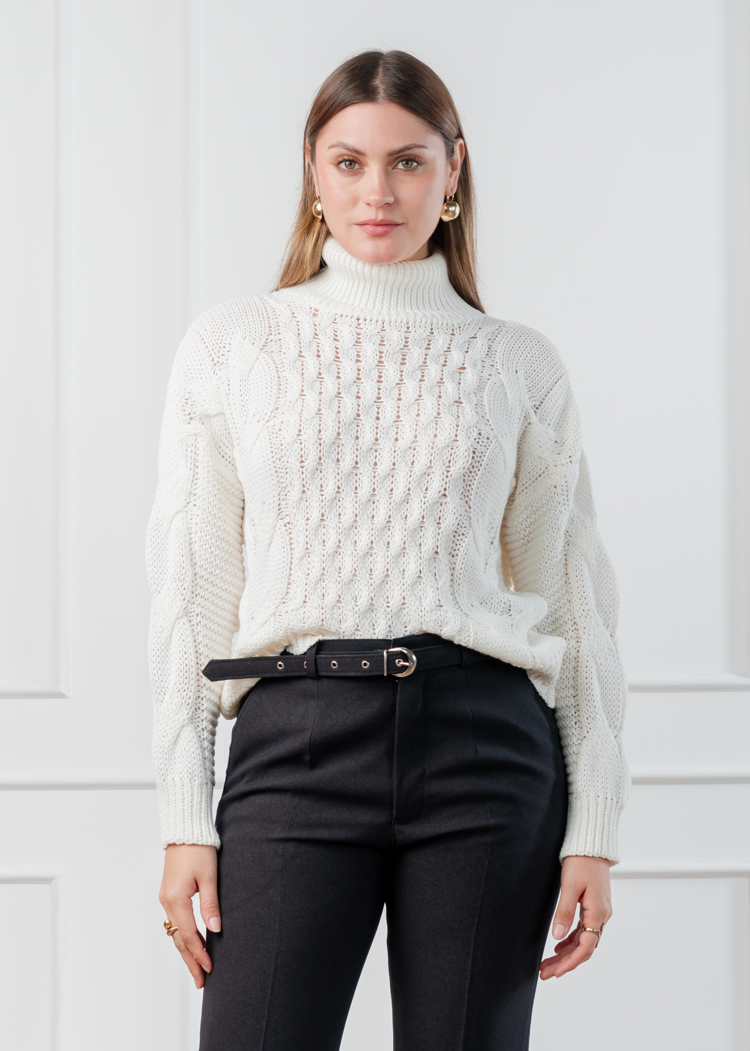 Elaborada en hilo tacto algodón y con un tejido de delicadas y románticas curvas verticales Nuestra Chompa Nicole te acompañará en este frío invierno. Nicole tiene cuello alto para mantenerte bien abrigada, y viene en colores clásicos que combinarán muy bien con cualquier pieza de tu armario! Elige tu color favorito!
